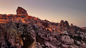 Argos in Cappadocia, a former monastery and caravanserai, defies expectations with its luxurious cave dwellings. Perched on a hillside riddled with underground tunnels, this boutique hotel offers impossibly romantic views across Pigeon Valley, framed by fairy chimneys, rock-hewn churches, and drifting hot air balloons.