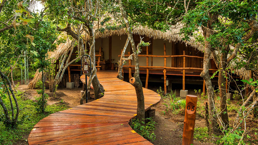 Yala, in the island’s southeast, is famed for its incredible diversity of wildlife. Elephants, water buffalo, sloth bears, and the elusive leopard roam its varied landscapes, alongside crocodiles, turtles, and a wealth of bird species. Every stay at Uga Chena Huts includes guided safaris, bringing guests face-to-face with this spectacular wildlife.